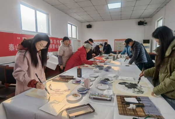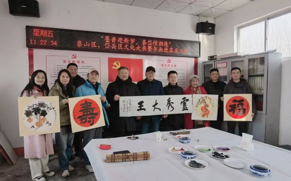 近日,泰山区文旅局联合岱岳区美术家协会走进道朗镇大王村,开展泰山区、岱岳区文化走亲暨书画下基层活动,丰富乡村文化生活,助力乡村文化振兴。