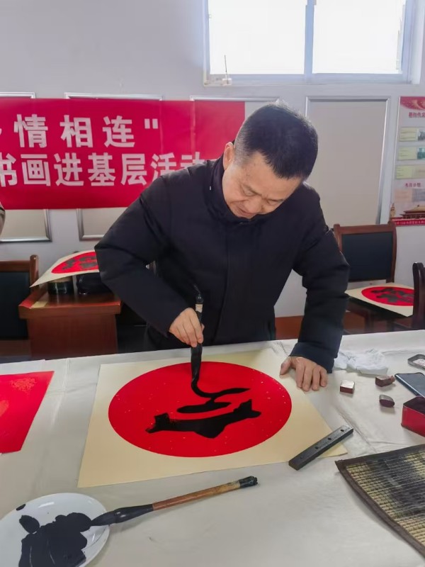活动现场,洋溢着浓浓的文化韵味。书画家们或写或画,以笔抒情,以墨表意,挥毫泼墨,舞动丹青,创作了一幅幅充满祝福和美好寓意的书画作品。在创作过程中,书画家们与现场的村民亲切交流,分享书画创作心得,传授书画创作技巧。村民们围拢在书画家身边,聚精会神地观看,不时发出赞叹之声。