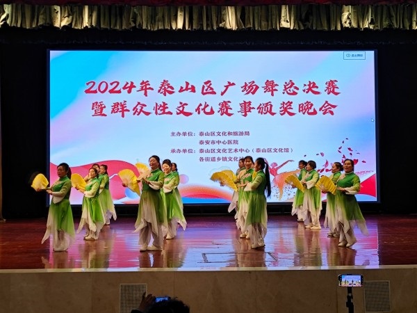 12月27日下午,泰山文化大厦一楼演播厅内,一场别开生面的广场舞比赛隆重举行。来自泰山区的14支广场舞队伍在这里激烈角逐,现场高潮迭起、氛围热烈,赢得了观众阵阵掌声。