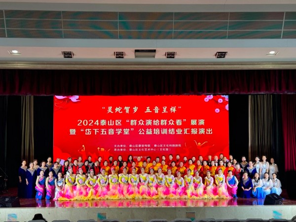 12月31日下午,泰山区文化馆“岱下五音学堂”公益培训结业汇报演出在泰山文化大厦举行。器乐、舞蹈、走秀、合唱等精彩的文艺节目,集中展示了泰山区文化馆公益培训的丰硕成果。