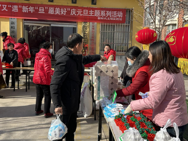12月30日,徐家楼街道新峪社区新时代文明实践站举办“黄河大集迎新春”活动。现场设多个农副产品摊位,居民可购新鲜蔬菜、手工艺品等,也可摆摊销售自家产品,本次活动提供了一个交流互通的平台,也让居民更深入地了解了农业文化和传统习俗。
