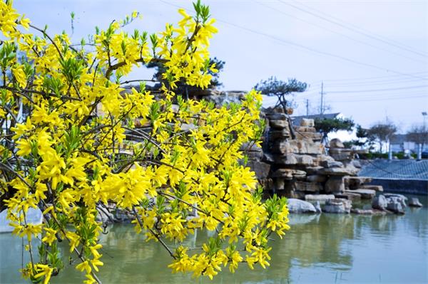 一树金黄报春归,寸心容得一径香。连翘花开淡雅清香,金黄的花瓣缀满藤蔓,搭配纤细的枝条,随风摇曳,像一群灵动的小精灵。