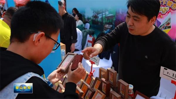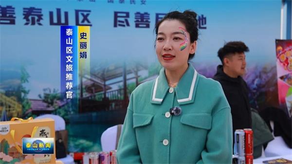 泰山区文旅推介官史丽娟表示,泰山区为大家带来了泰山煎饼、泰山啤酒、泰山雕刻、泰山灵芝、金属编艺等特色产品,还有泰安方特、欢乐世界、地下龙宫等景区凭票根享受半价优惠,欢迎各地球迷来泰山区游玩打卡。