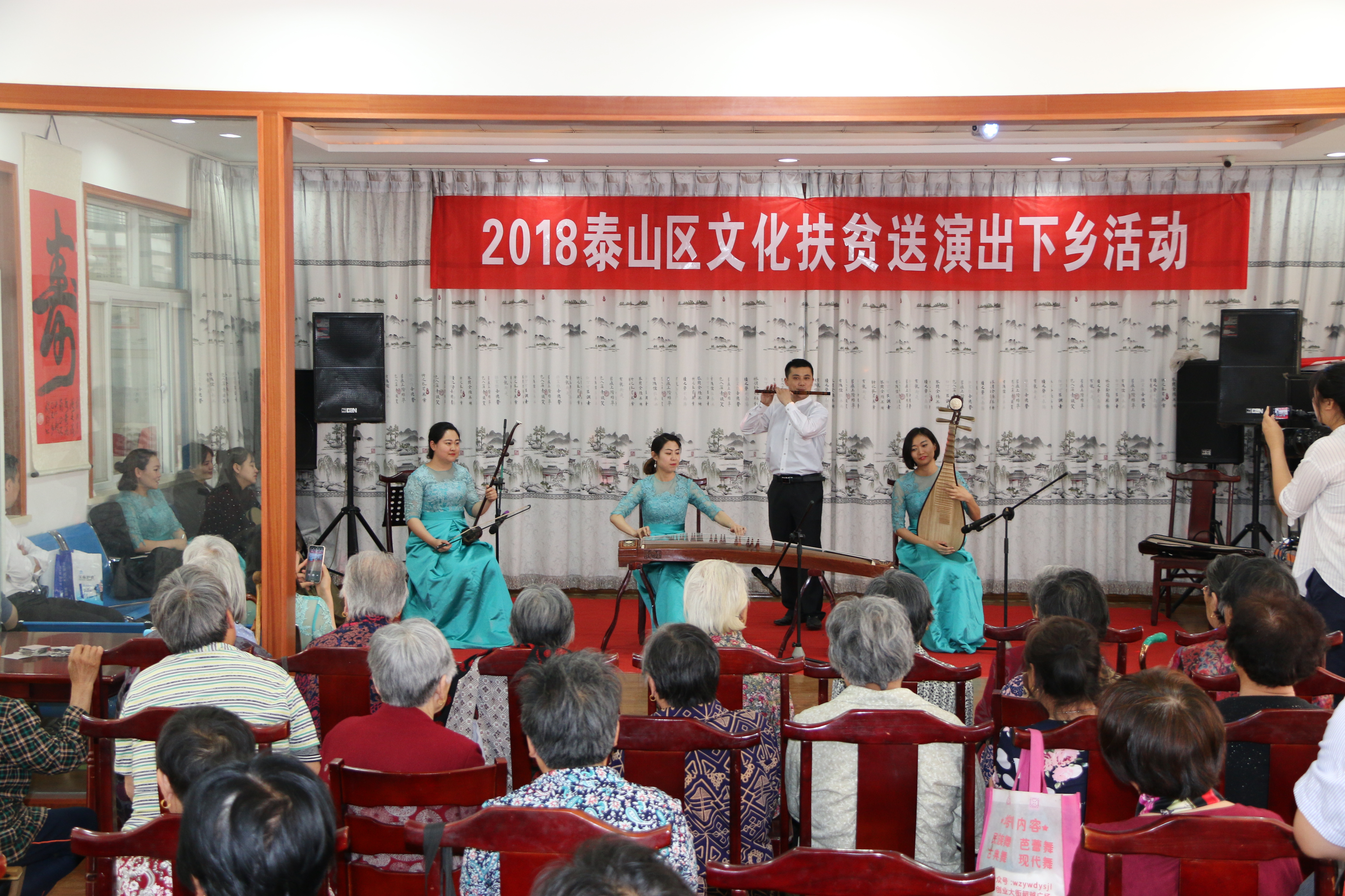 2018年5月18日下午,泰山区文化扶贫送演出下乡活动—走进上高街道岔河社区日间照料中心,本次活动是由泰山区文广新局主办,泰山区文化馆、泰山民族乐团承办。泰山区文化馆的演员为大家准备了一场精彩纷呈的节目,为老年群体和贫困村群众提供更多更好的文化生活,真正成为老百姓主动参与的文化生活。