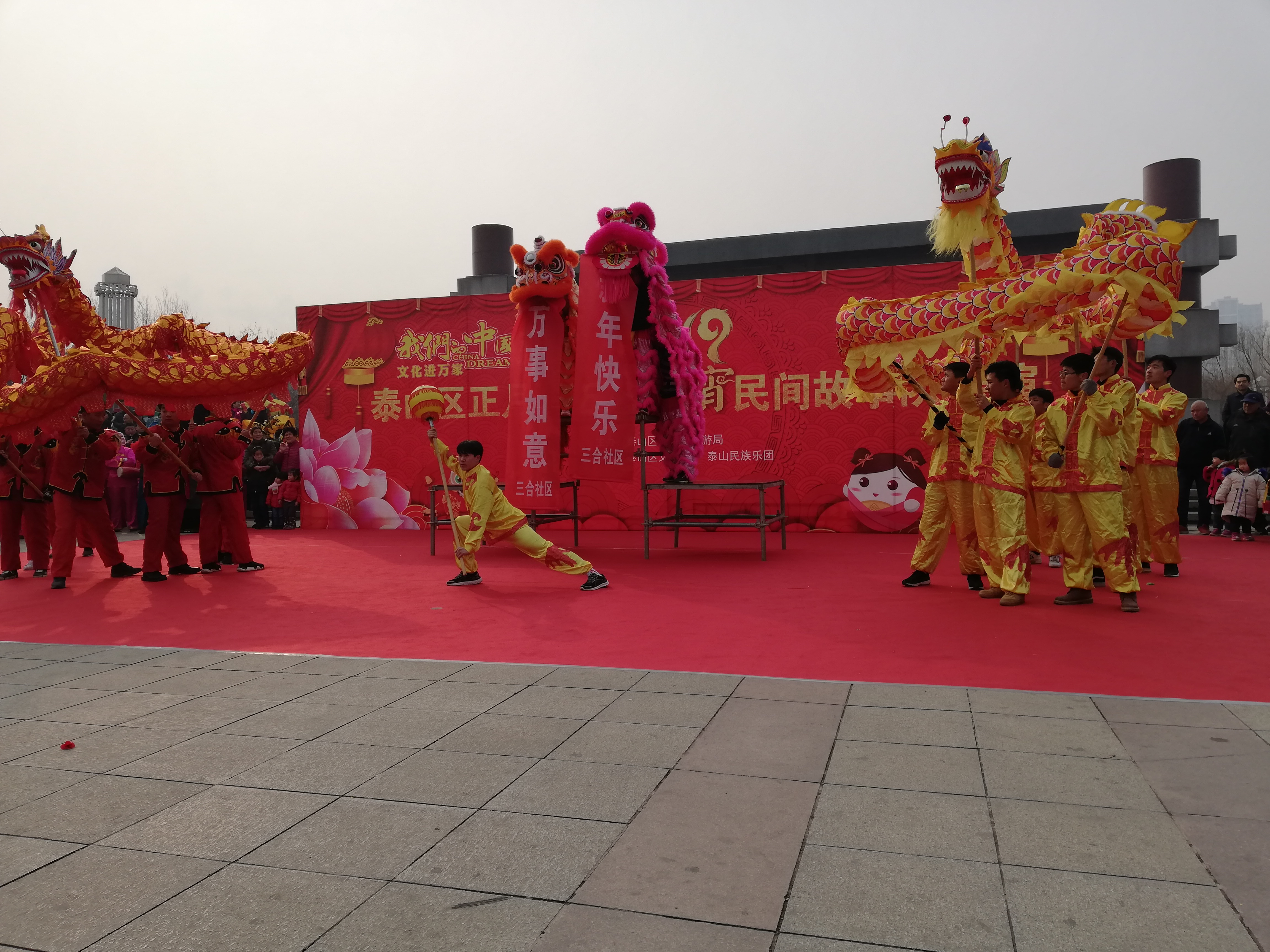 为丰富和活跃春节期间群众文化生活,营造欢乐祥和的节日气氛,发扬传统文化精神,让优秀的民间风俗文化更多更好的惠及群众,泰山区在春节期间组织了系列节庆文化活动,今天我们在南湖广场举办正月十五闹元宵民俗故事队展演活动。