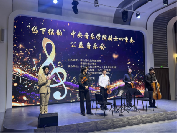7月12日晚,由泰安市泰山区文化和旅游局、泰前街道办事处主办,泰山区文化艺术中心(泰山区文化馆)等单位承办的“岱下弦韵”中央音乐学院骑士四重奏公益音乐会在泰安印象山前剧场成功举办。音乐会将中央音乐学院骑士四重奏这一高水准的艺术力量引入泰山区,群众在家门口就可以享受到跨越古典与现代的音乐时空对话。
