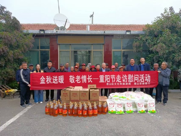 10月28日,区文旅局党组书记、局长张丽,党组成员、副局长刘帅,泰山农商银行泰前支行行长韩鹏等一行,赴区文旅局第一书记包保村徂徕镇李家峪村开展“金秋送暖,敬老情长——重阳节走访慰问”活动。慰问团在第一书记李超的引导下,走进村子高龄老人家中,与老人及家人热情交流,仔细询问老人的身体状况和生活情况,并耐心讲解了防电信诈骗及有关金融政策,为老人送去了生活物资等慰问品及节日的祝福和关爱。