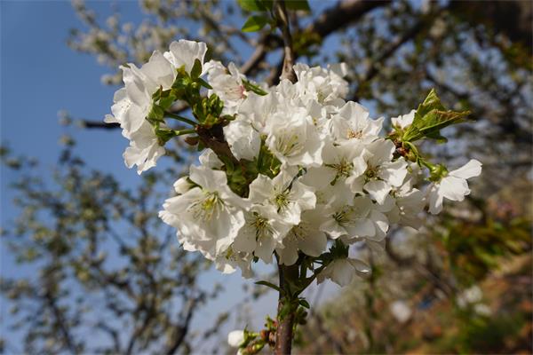 线路二:省庄北部山区大河峪村、亓家滩村樱桃花素雅清新,恬静绽放,赏心悦目。